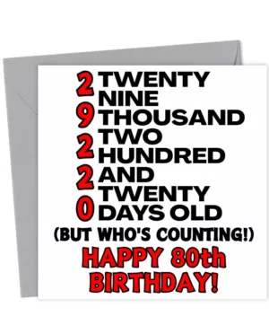 We have a wide range of funny 80th birthday cards with moving messages that will definitely fill every pore of their skin with joy. And if he’s an old man who makes dad jokes every now and then, our wide assortment of rude 80th birthday cards will be a perfect fit. The clever puns and highly relatable, hilarious punch lines will definitely make him burst out with laughter.