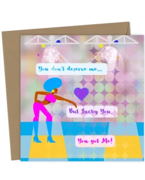 70s Disco Greeting Card – Afro Woman Blowing Kiss – “You Don’t Deserve