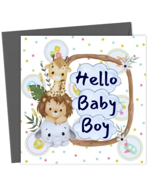 Colorful Blue Baby Boy Card with Cute Animal Theme