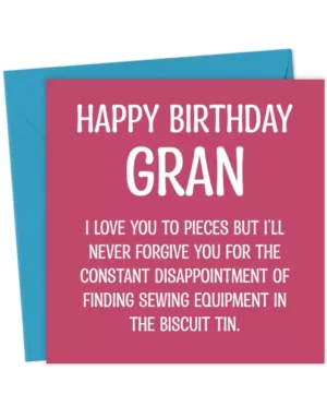 Funny Gran Birthday Card – Biscuit Tin Sewing Kit Joke