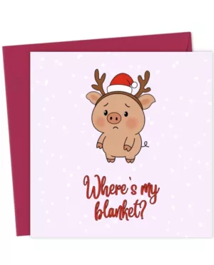 Cute Christmas Pig “Where’s My Blanket?” Card
