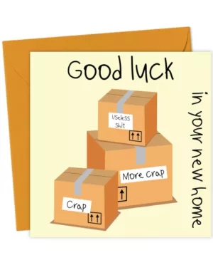 Good Luck In Your New Home Boxes Of Crap Funny Card