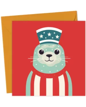 Patriotic Seal in Top Hat – Cute Nautical Animal Illustration Card