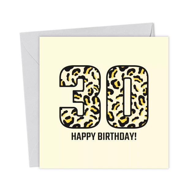 30th Birthday Card – Leopard Print 30th Card – Greetings Card