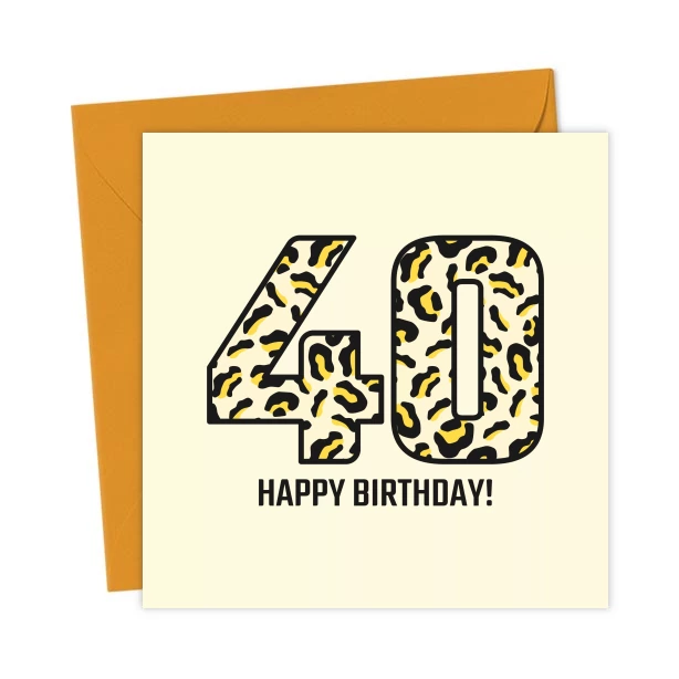40th Birthday Card – Leopard Print 40th Card – Greetings Card