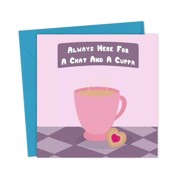 Show you care with this cosy cuppa card. Featuring a cute steaming mug and biscuit design, it’s perfect for friends, thank you messages, encouragement, thinking of you and just because occasion.