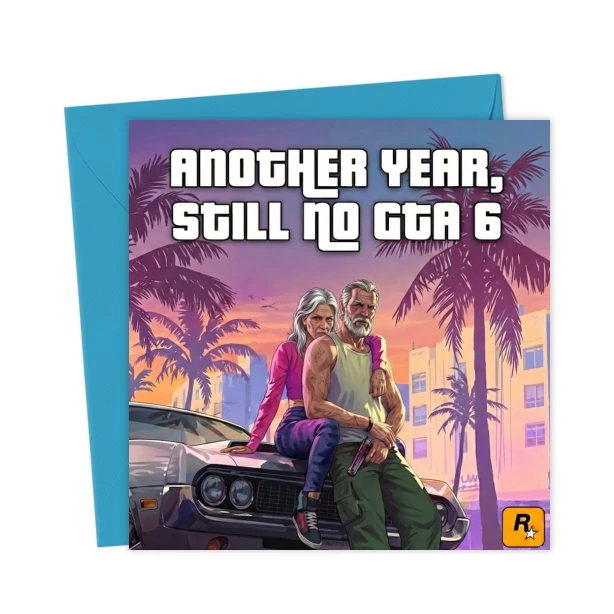 The wait continues. How many more times will it be delayed? The perfect grand theft auto themed card for any gamer. Perfect for Birthdays