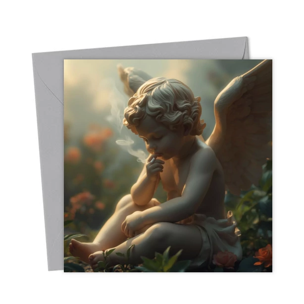 Cherub smoking blank card – Greetings Card