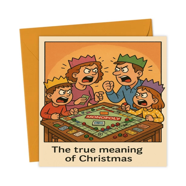 If hardcore board games aren’t a family tradition in your house at Christmas then this card might not be for you. But if they are then this scene may be familiar and you have my sympathies.