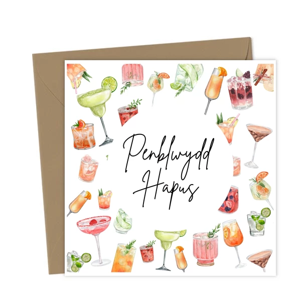 Cocktails Welsh Birthday Card – Penblwydd Hapus – Greetings Card