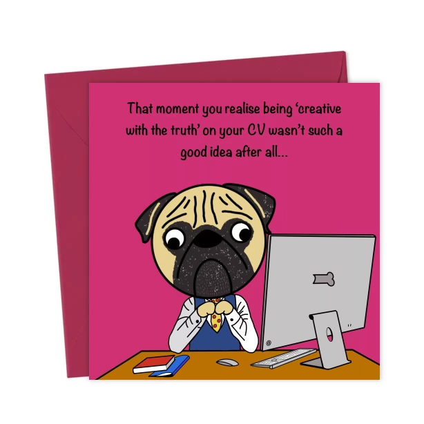 Congratulations on the new job card. Sarcastic Pug. Lied on your CV.