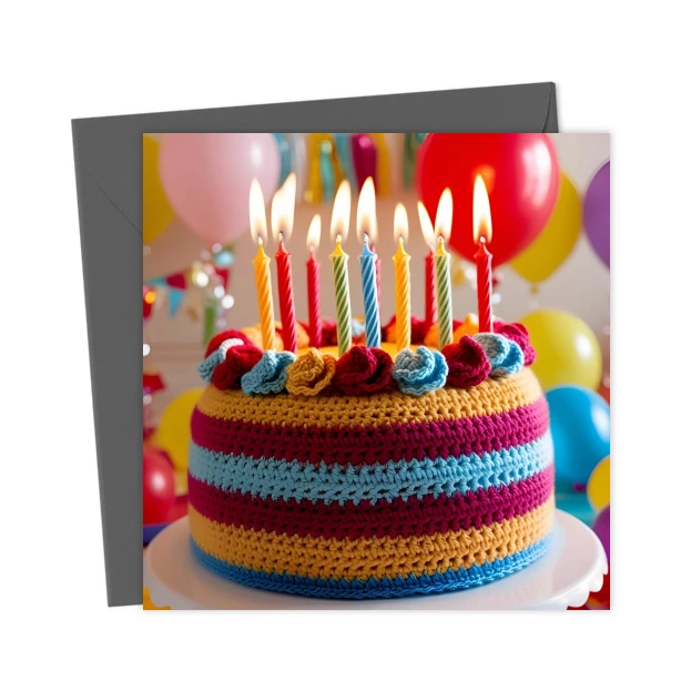 Crochet Birthday cake card, Card for crafters, knitters & yarn lover – Greetings Card