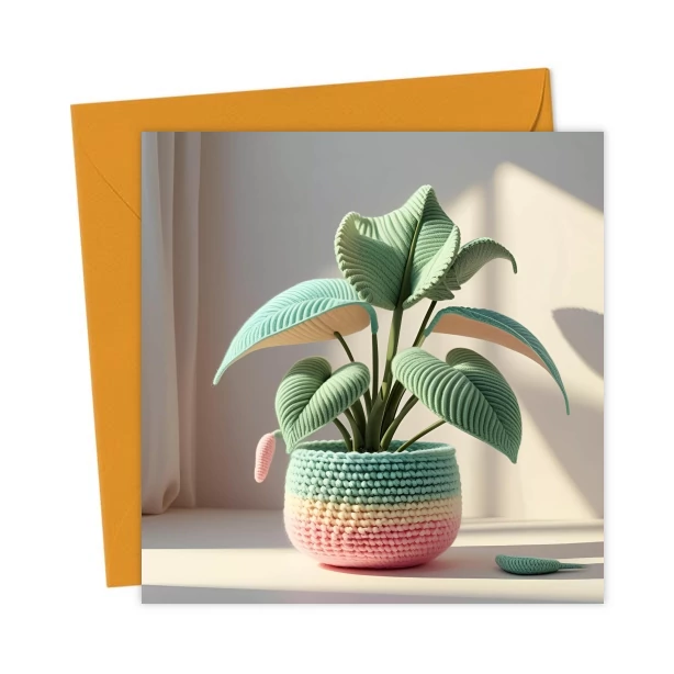 Crochet plant pastel blank card, get well, birthday, thank you – Greetings Card