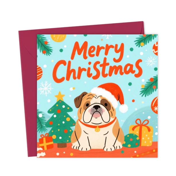 Cute Bulldog Dog Merry Christmas Card for Pet Lovers Friends & Family – Greetings Card