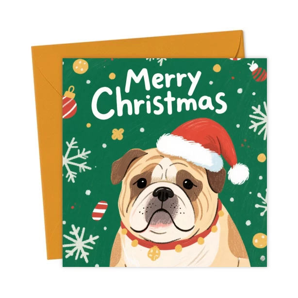 Cute Bulldog Dog Merry Christmas Card for Pet Lovers Friends & Family – Greetings Card