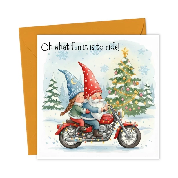 Cute Christmas Gonks on Motorbike – Greetings Card