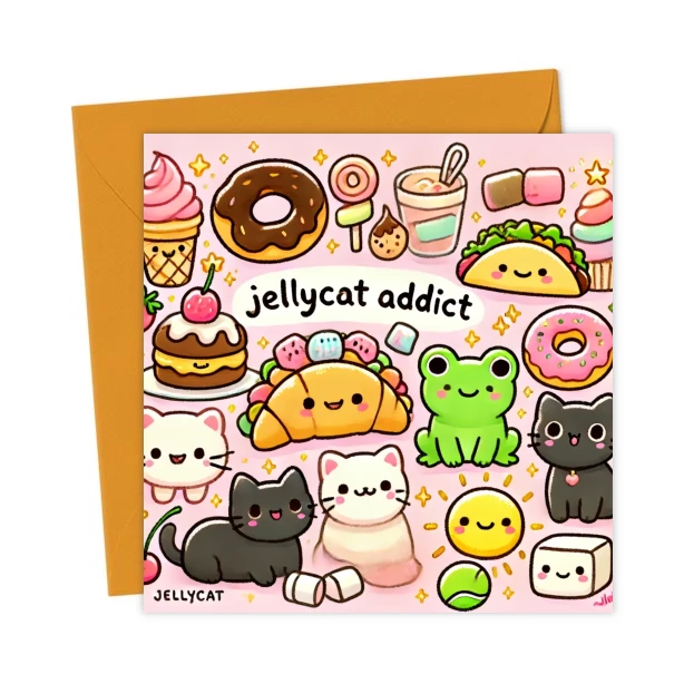 Cute Jellycat Inspired Kawaii “Jellycat Addict” Happy Birthday Card – Greetings Card