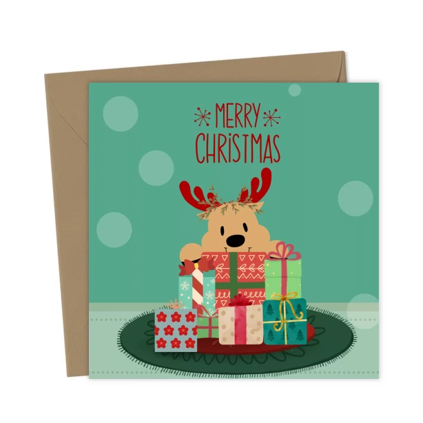 Cute Reindeer Christmas Card – Funny Holiday Greeting with Gifts – Greetings Card