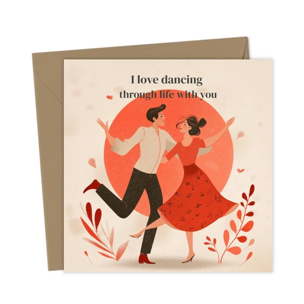 A romantic card for the one you want to keep dancing through life with. Perfect for Valentine’s Day, anniversaries, or just because. Blank inside for your own words.