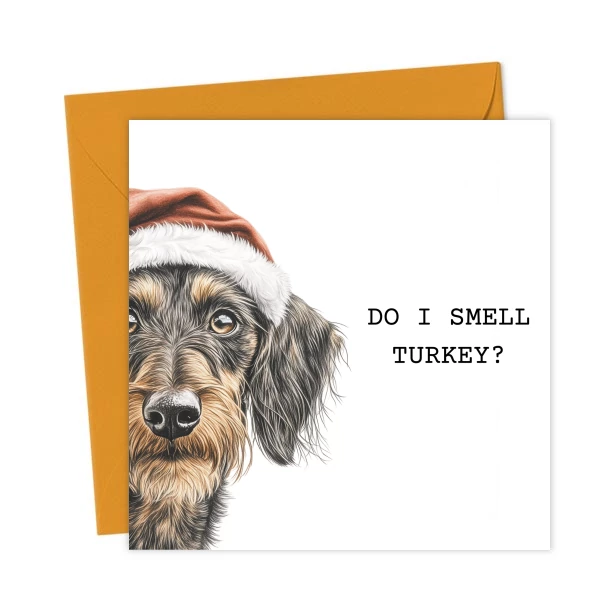 Do I Smell Turkey? Wire-Haired Dachshund Christmas Card – Greetings Card