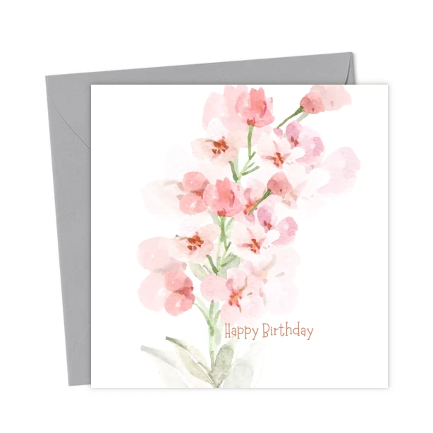 Elegant Pink Flower Birthday Card – Watercolor Design – Greetings Card