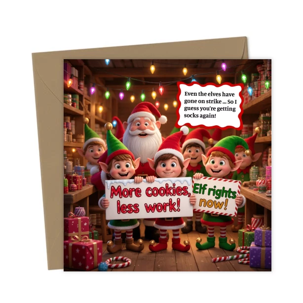 Elf Strike at the North Pole – Greetings Card