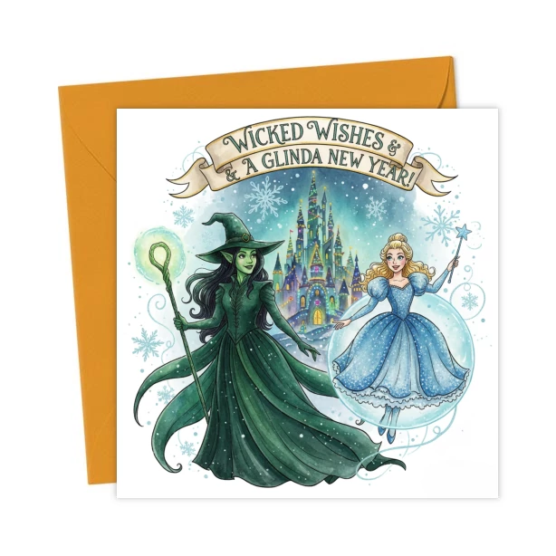Elphaba and Glinda Wicked & Wonderful Magical Christmas New Year Card – Greetings Card