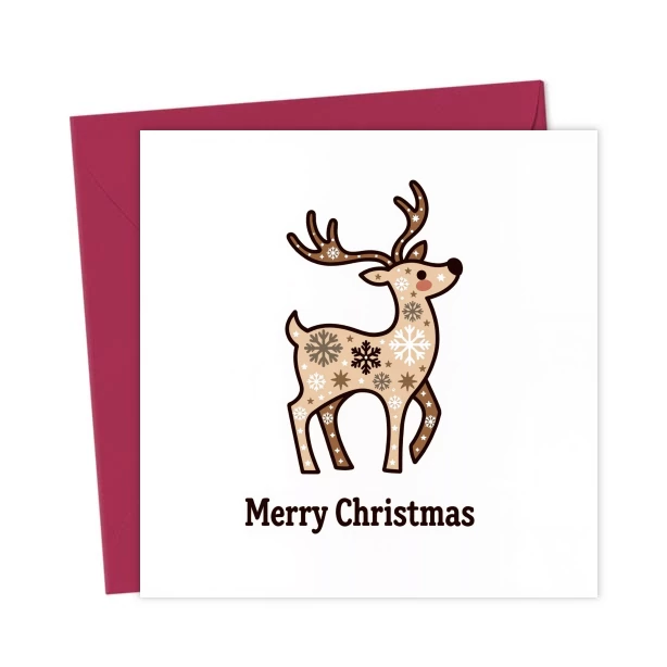 Festive Snowflake Reindeer – Merry Christmas – Greetings Card