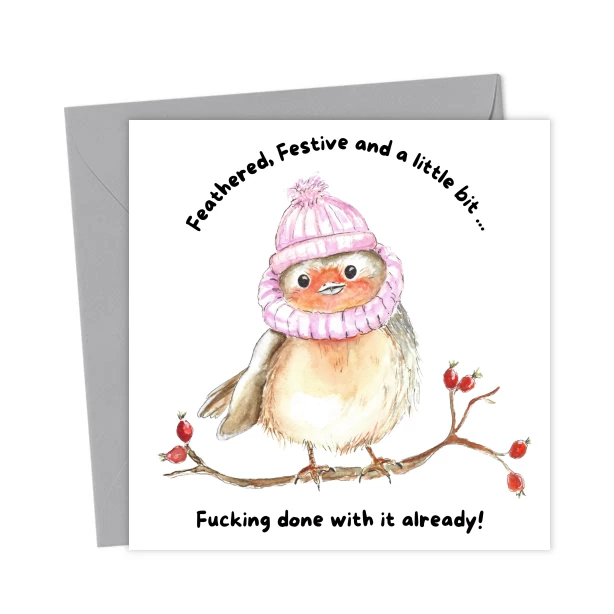 Festively Annoyed Robin – Greetings Card
