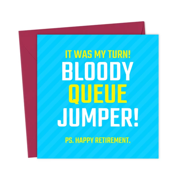 Funny Bloody Queue Jumper Retirement Card – Greetings Card
