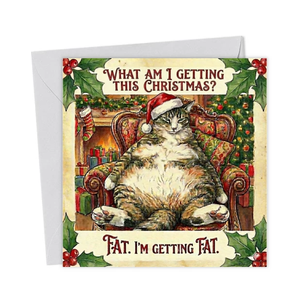 Funny Cat Christmas Card – “Getting Fat” The Honest Tabby – Greetings Card