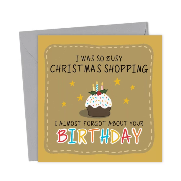 Funny Christmas Birthday Card – “Christmas Shopping”December birthday – Greetings Card