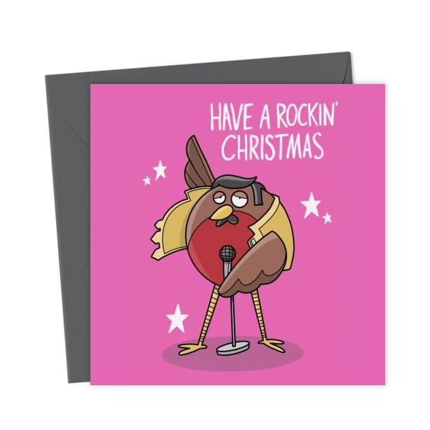 Funny Freddie Mercury Robin Christmas Card – “Have a Rockin’ Christmas – Greetings Card