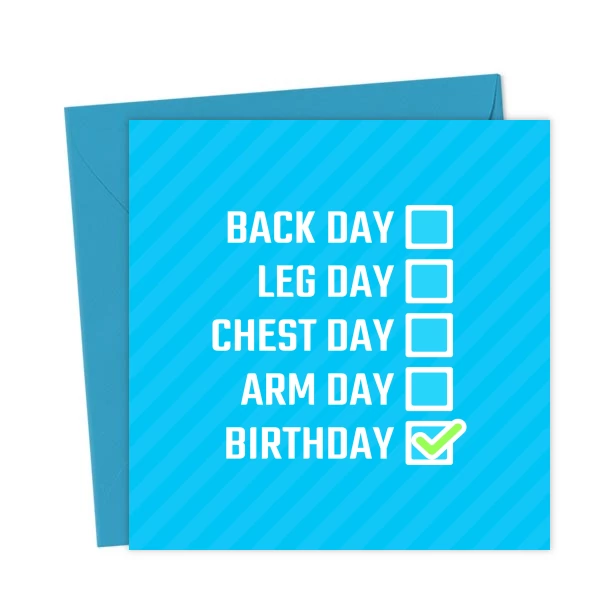 Funny Gym Birthday Card Chest Day, Arm Day, Birthday – Greetings Card