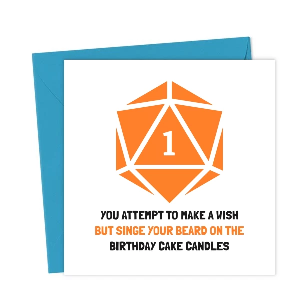 Funny Roll One – Singed Beard DnD Birthday Card – Greetings Card