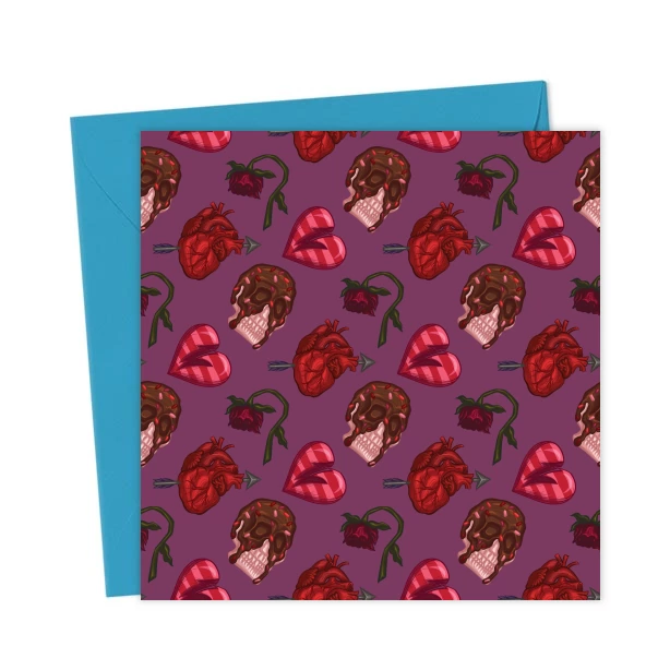 Goth Valentine’s Day Spooky Rose Skull Heart Card – Greetings Card