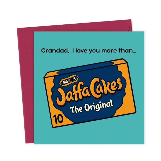 He’ll know you love him with this Jaffa Cakes style card. The perfect card for your chocolate cake loving Pops!