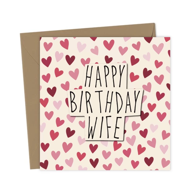 Happy Birthday Wife – Hearts Birthday Card – Greetings Card