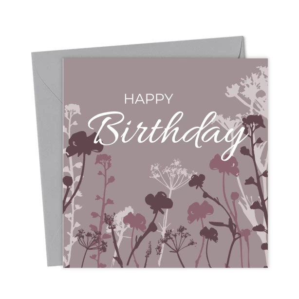 Celebrate her special day with this gorgeous purple and lilac birthday card. Featuring delicate images of pressed flowers, this feminine card is ideal for mams, daughters, sisters, wives and friends.