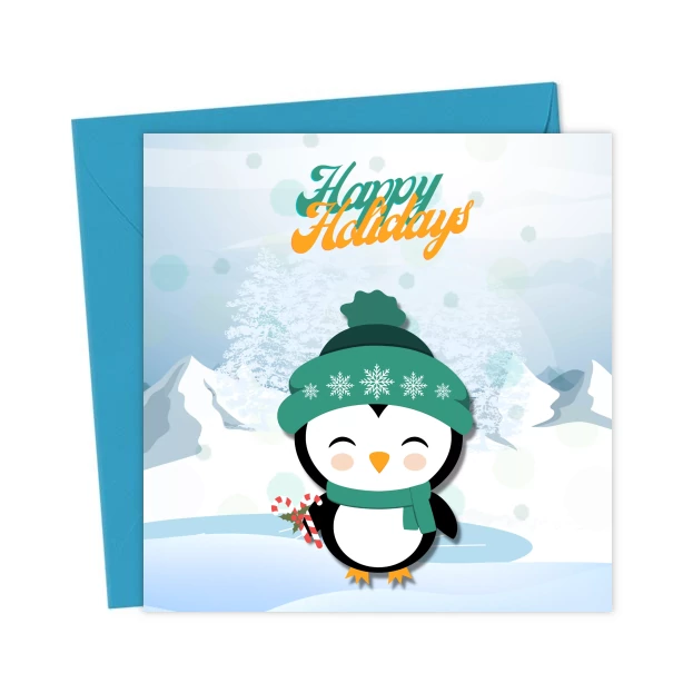 Happy Holiday’s Penguin – Greetings Card