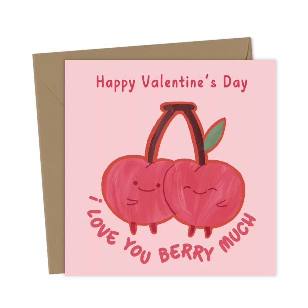 Sweet, soft, and full of love 🍒💕 This adorable Valentine’s card features cuddly cherries and the message “I love you berry much”- a charming way to share heartfelt affection with a playful pun.🍒💕