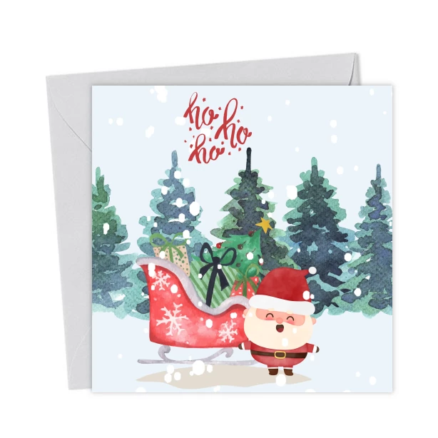Ho Ho Ho and Sant’a Snowy Sleigh – Greetings Card