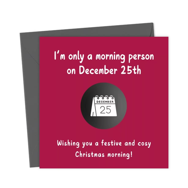Whether you’re sending it to a fellow late sleeper or a friend who can’t wait to open presents, this card is sure to bring a smile. Festive, fun, and full of holiday cheer. 🎄✨