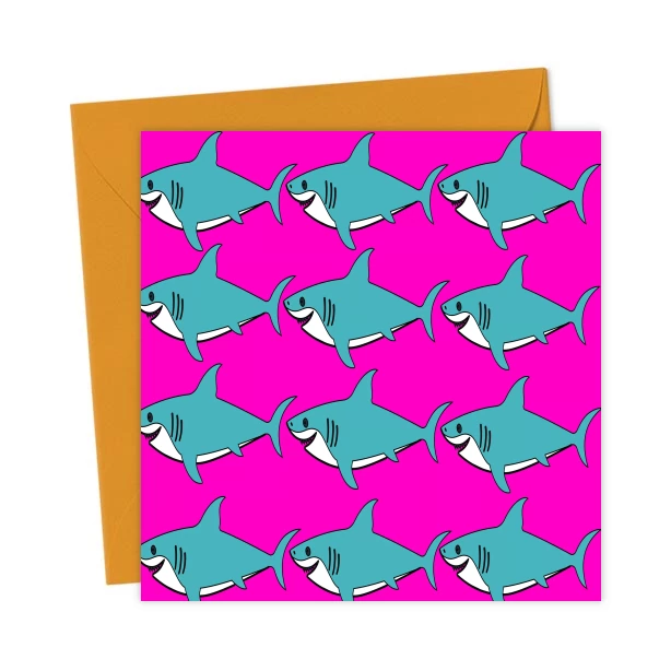 Just some sharks swimming in rows on a vibrant pink background – Greetings Card