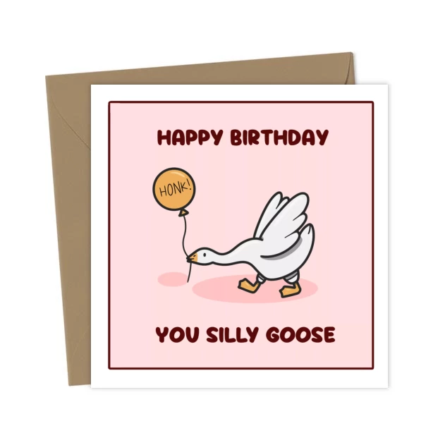 Say Happy Birthday in the cutest way with this silly goose card! Featuring a kawaii goose design and playful pun ‘Happy Birthday You Silly Goose’!