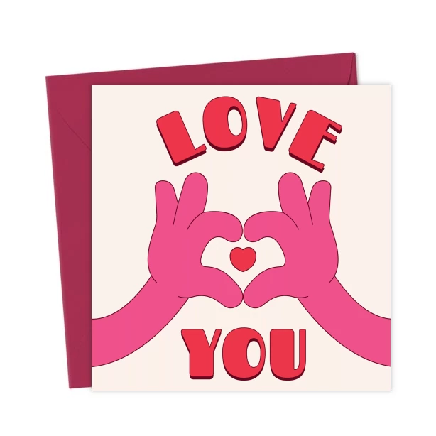 Sweet card featuring two hands holding a heart in the middle with the text ‘Love You.’ Perfect for Valentine’s Day or any occasion to show someone you care