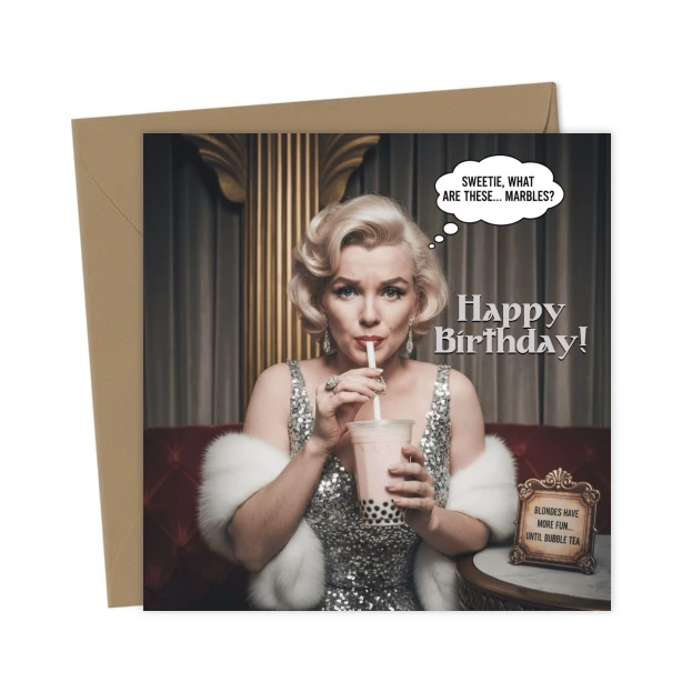 Marilyn Monroe confused by bubble tea birthday card – Greetings Card
