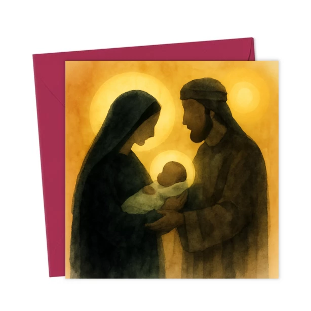 “Mary’s Boy Child” Christmas card helps celebrate the season with this vibrant and eye-catching design of Mary, Joseph and the baby Jesus.
