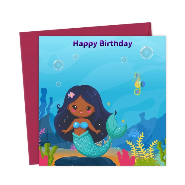 Mermaid Girl Dark Hair – Greetings Card