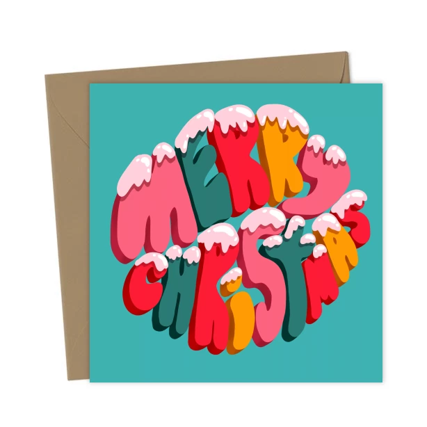 Merry Christmas Retro Bubble Letters Snow Cute Colorful – Greetings Card